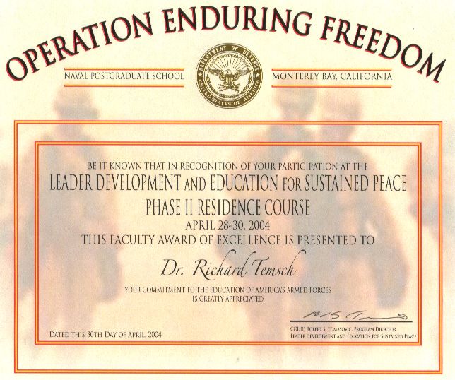 US Department of Defense Leader Development and Education for Sustained Peace, Operation Enduring Mission Center for Civil-Military Cooperation, Naval Postgraduate School, Monterey